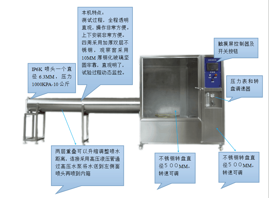 本產品適用于測試汽車燈具、雨刷性能、防水條、帶機車儀表、guo防工業之導航,以檢測產品之耐水性能。