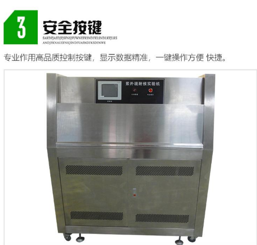 • UV紫外光照加速老化測試箱產品用途:適用于非金屬材料的耐陽光和人工光源的老化試驗。可模擬由陽光、溫度、濕度、凝露氣候環境的變化,性能